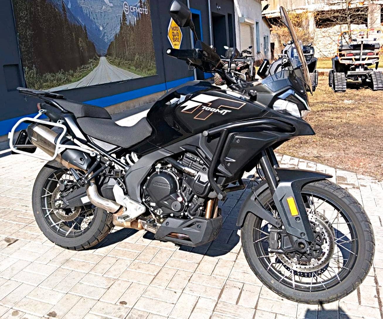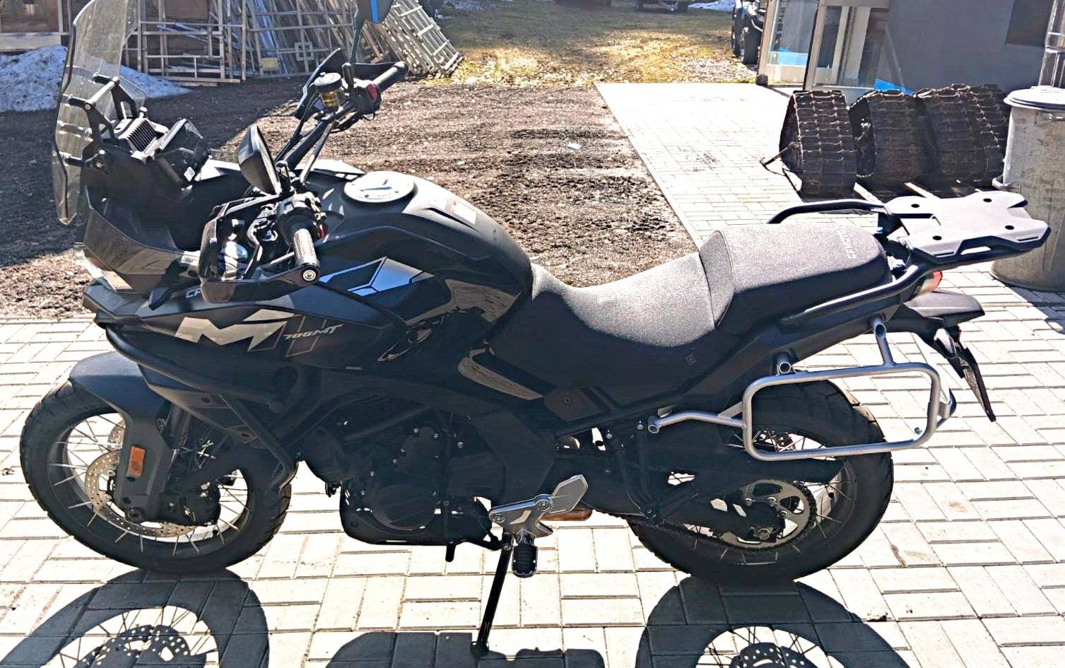 CFMOTO 700MT Adventure – předváděcí motocykl se zárukou 24 měsíců a možností odpočtu DPH. Univerzální adventure stroj vhodný na každodenní ježdění, cestování i lehčí výlety mimo asfalt. Motorka zaujme pohodlnou ergonomií, výbornou ochranou jezdce a bohatou výbavou už v sérii – vyhřívané rukojeti, vyhřívané sedlo řidiče, kontrola tlaku v pneumatikách, trakční kontrola, ochranné rámy, kryt pod motorem, nastavitelné plexi, USB A/C a příprava pro kufry. Díky 20litrové nádrži nabídne i velmi slušný dojezd.
